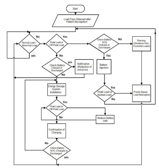 Demand side management starts after the recognition of patterns by using an artificial neural network. A smart demand side management algorithm is shown in Figure 2. Our target was to maintain the load within normal limits with the minimum discomfort to consumers, and with benefits for the supply company in peak load reduction and valley filling.