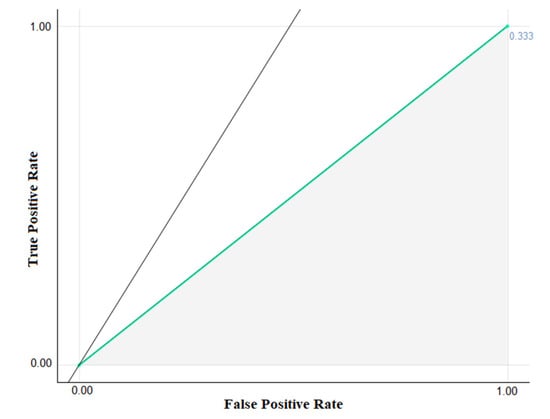 The receiver operating characteristic curve (ROC) is the measure of sensitivity versus 1 []. It shows the performance of a classifier at all classification thresholds. Another factor to determine the classifier accuracy is the area under the curve (AUC). If a classifier has a higher AUC, it can be considered to be more accurate for classification. Figure 4 shows the ROC graph of the decision tree, and Figure 5 shows the ROC of the ANN.