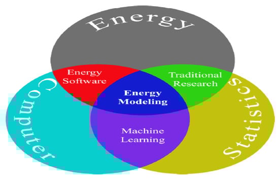 Energy challenges are crucial, but, at the same time, they are also complex and there are several parameters needed to assess the energy requirements and there are tremendous options to fulfill. A deep understanding of energy, environment, technology, and integrated policy planning is essential to address energy challenges. To estimate upcoming energy demands or emission values, statistical forecast techniques are used [6]. Neural networks not only help in prediction and estimation, they are also more efficient and accurate in optimum decisions, such as in the energy modeling of a building. As shown in Figure 1 a combination of energy, statistics, and computers have developed a new field in energy engineering known as “energy modeling”.