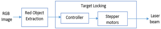A surveillance camera provides 30 frames per second (FPs). These frames were required by the object detection algorithm to update the location. The red object extraction step employed a digital-image-processing technique to choose the region of interest from the current frame. This information was used by the lesser barrel to lock the target. Information hand-off between surveillance camera to laser barrel was achieved with the help of an 8051 microcontroller.