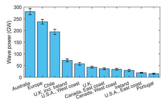 Ocean waves have huge potential to make serious contributions to renewable energy harnessing. The power potential of wave energy is around 1 TW along the coastal sites across the globe, and this potential can reach up to 10 TW when wave energy from the open ocean is also considered [1]. This energy would be enough to meet the world’s total energy demand [2]. Approximately 93,000 TWh per annum of energy can be harnessed from ocean waves [3]. A comparison of the wave power harnessed in different regions of the world is shown in Figure 1. Australia has the largest wave power system in the world [4].