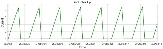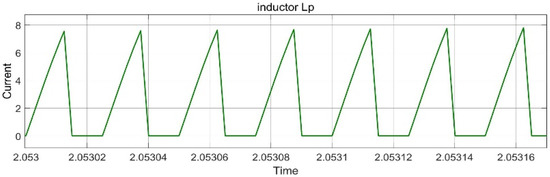 The Lp current rises when switch is on. The rate of the change of current shown in Figure 5 is too small, at 8.2 A. The operation of the circuit is the same in this case as it is at normal voltage.