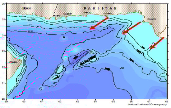 - National Institute of Oceanography (NIO Pakistan) Archives 2000. Available online: niopk.gov.pk/NODC.html (accessed on 25 December 2021).