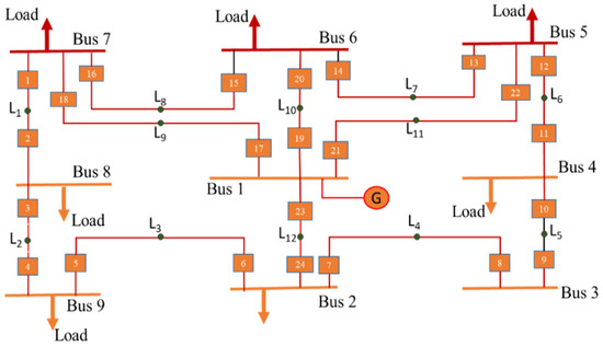 MPA is tested on an IEEE-9 bus system, as depicted in Figure 1. The different combination and short system test is mentioned in [14]. The ration for the CT was set to be 500/1 for all DOCRs. The higher and lower ranges of TDS and PS were set to be 1.2 to 0.1 and 2.5 to 0.5, with a CTI of 0.2 s. The best and finest solution achieved is given in Table 1, which shows that MPA provided an optimal solution to the DOCR problem. The MPA has the benefit of an overall net improvement in the total operating time of 5.44 s, 1.308 s, 10.87 s, 24.07 s, and 20.3 s, over the PSO, HS, NLP, GA, and BBO techniques mentioned in References [7,10,14,15].