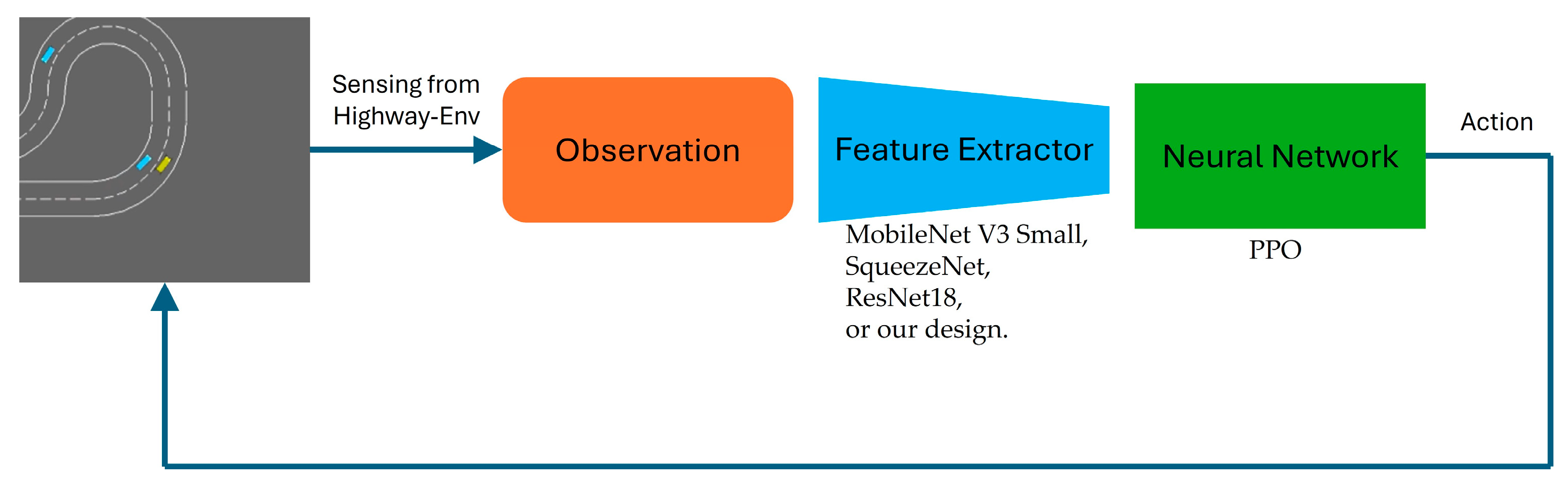 - Highway-Env Documentation. Available online: https://highway-env.farama.org (accessed on 11 July 2025).