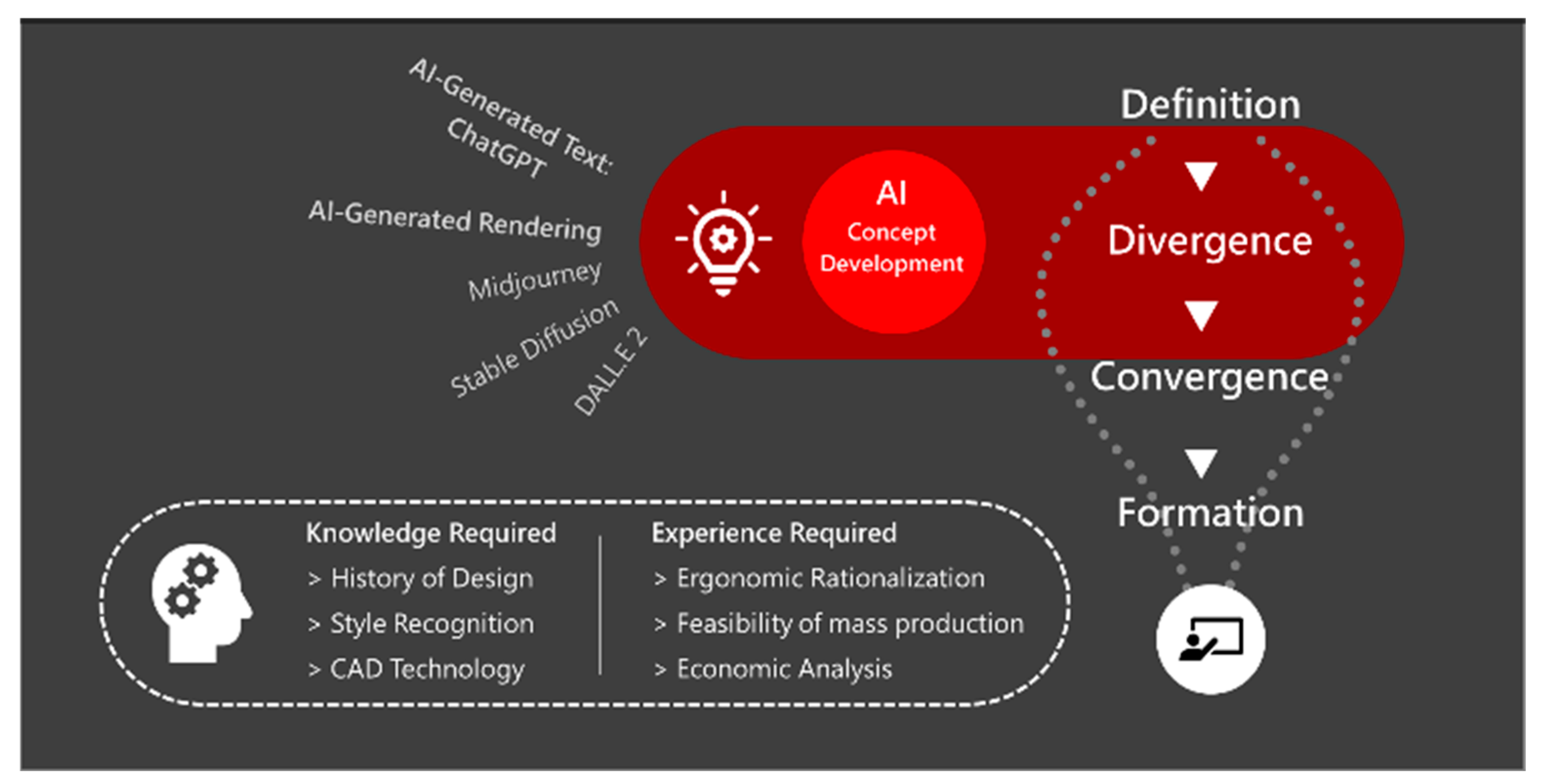 Traditional design processes comprise definition, divergence, convergence, and formation [