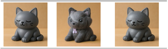 This study employed a training dataset consisting of 200 wool felt craft images captured by the authors and 100 AI-generated images produced using SDXL 1.0 [8], along with an additional 20 non-overlapping real photographs as the test set. All images were taken using Google Pixel 7a, uniformly preprocessed through background removal and resizing to 256 × 256 pixels, and then converted into edge maps and color hint images based on the model’s input requirements.