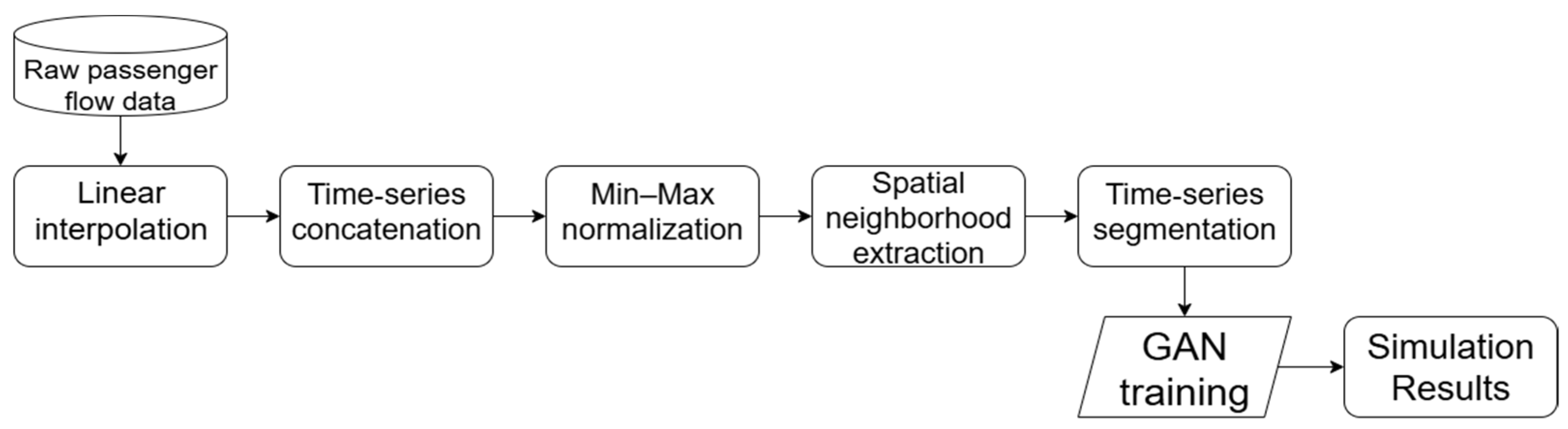 In this study, we used RMSE as an indicator to evaluate the model. Specifically, for each training batch, the generator uses the historical passenger flow data at the previous time (t − 1) as a conditional input and generates a 3 × 3 grid passenger flow prediction matrix corresponding to time t. Then, this prediction matrix is flattened with the true observation matrix after inverse normalization, and the RMSE of each batch is calculated, and finally all batch results are averaged to obtain the average prediction error of the model on the entire data set. This approach not only quantifies the prediction deviation of individual batches but also suppresses occasional fluctuations through the averaging process between batches, ensuring that the evaluation results are more robust and comparable. The control group also uses the same RMSE calculation process, only comparing the 3 × 3 passenger flow matrix generated by random noise with the true passenger flow matrix, without the need for historical conditional input.