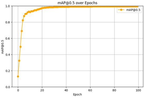 Figure 1 shows the mAP@0.5 curve of the YOLOv5 model during training. The model converges rapidly in the early stages of training, and mAP@0.5 rises steadily to close to 1.0. This means that the performance of the YOLOv5 model is very good and can effectively learn and identify features in the training data.