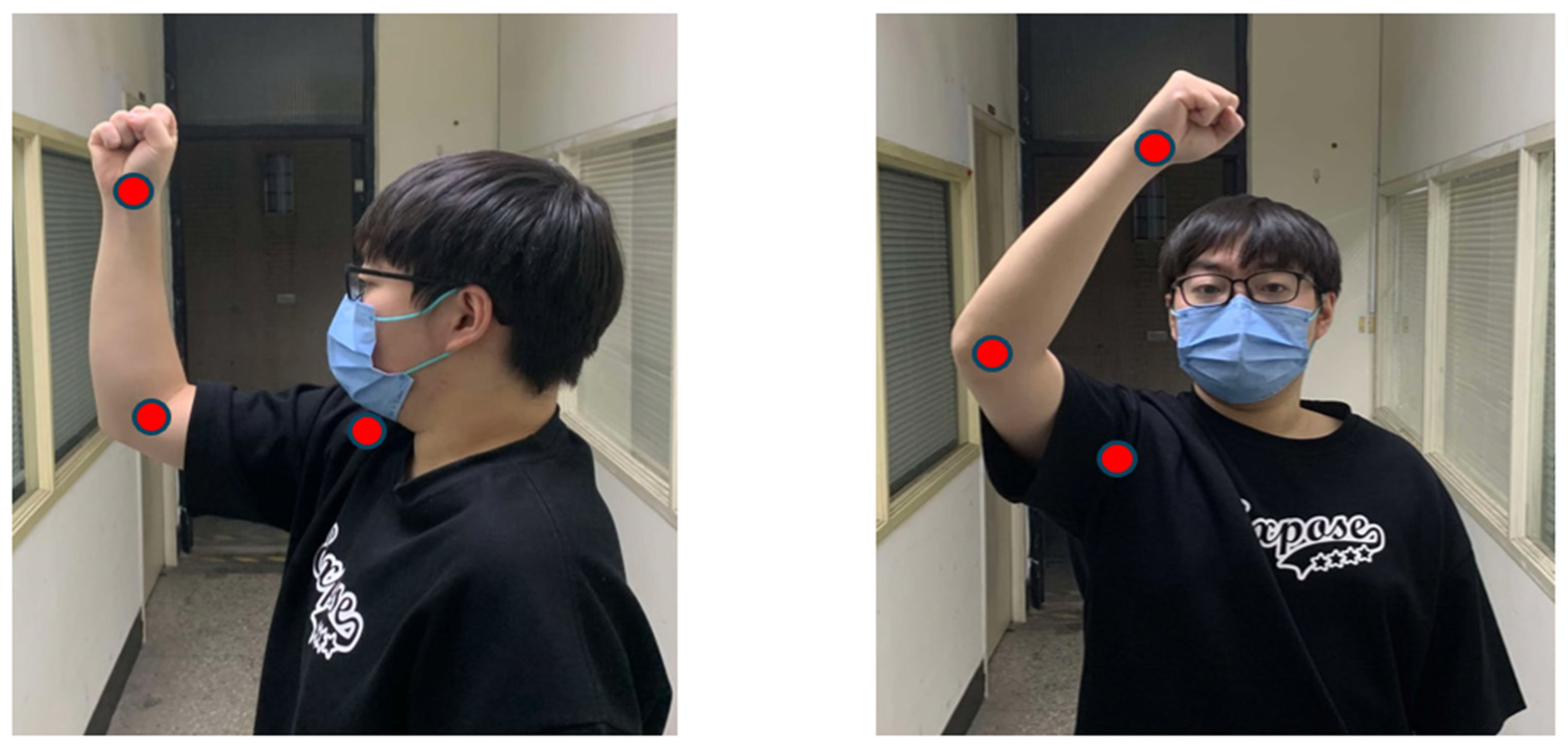 In the experiment, image acquisition techniques were used to obtain the coordinate data of the shoulder, elbow, and wrist. The shoulder coordinate was designated as the origin, serving as the reference point for measuring the relative positions of the elbow and wrist. The 3D coordinates derived from the skeleton detection model and depth camera through back-projection were then compared with the actual measured values to calculate the positional errors. This comparison enabled an assessment of the accuracy and precision of the critical point extraction process.