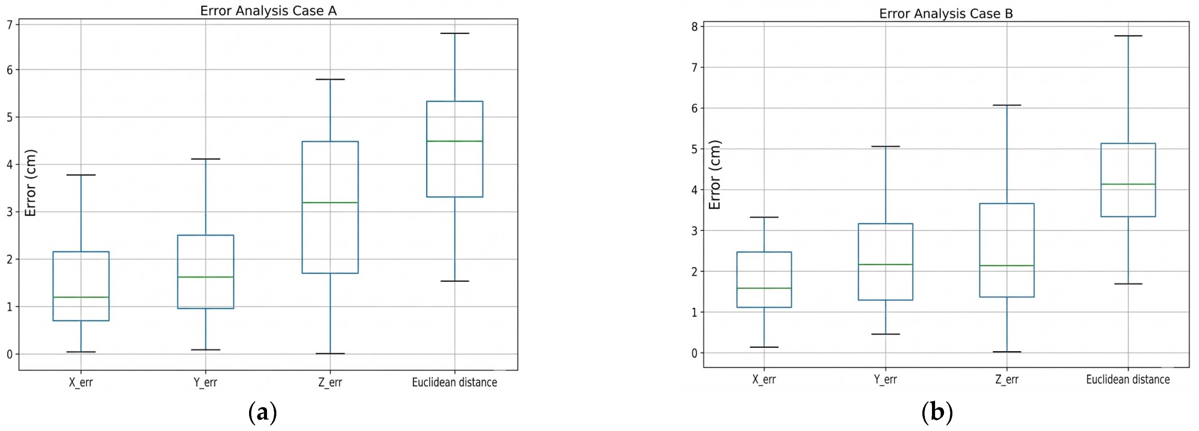 Figure 4b presents the statistical error data of the wrist relative to the shoulder.
