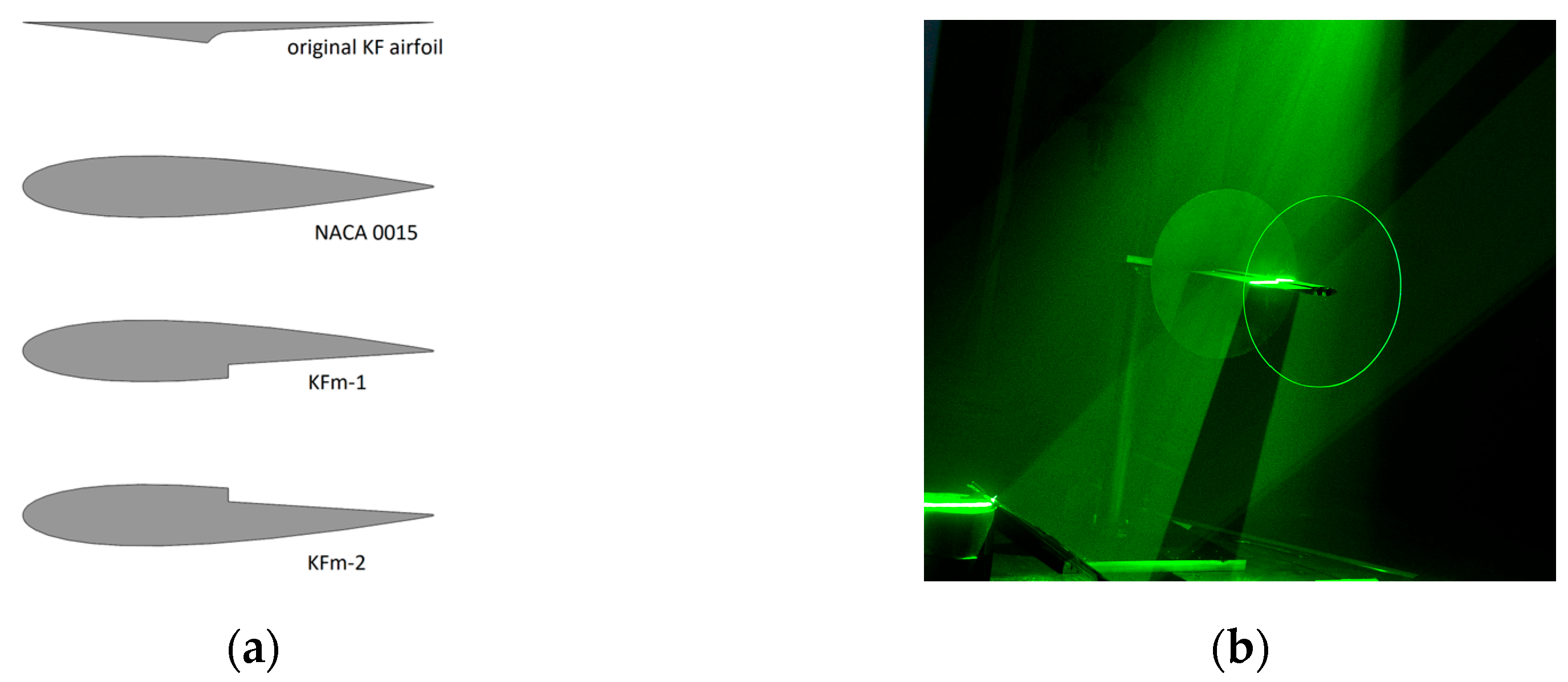 - DeLaurier, J.; Harris, J. An Experimental Investigation of the Aerodynamic Characteristics of Stepped-Wedge Airfoils at Low Speeds. In Proceedings of the 2nd International Symposium on the Technology and Science of Low Speed and Motorless Flight, Cambridge, MA, USA, 11–13 September 1974; Massachusetts Institute of Technology: Cambridge, MA, USA, 1974; pp. 10–15. [Google Scholar]