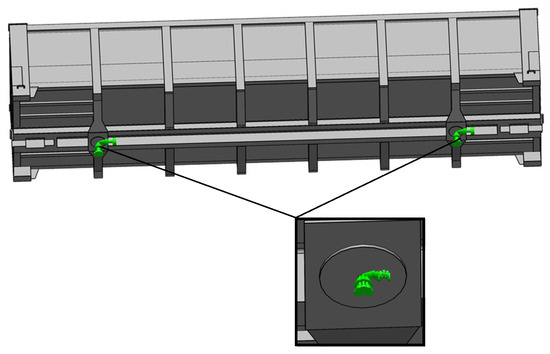 The boundary conditions (fastening of the body model) are shown in Figure 4. The body model was fixed by the studs. The friction forces between the studs and the thrust washers were not considered [27].