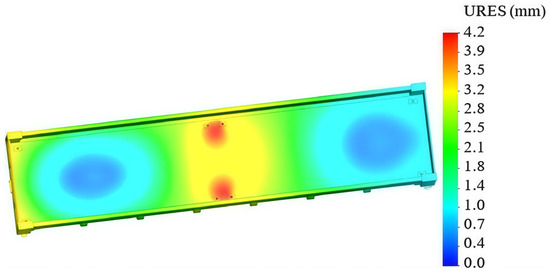 The maximum displacements were identified at the end part of the boiler and amounted to 1.45 mm (Figure 18).