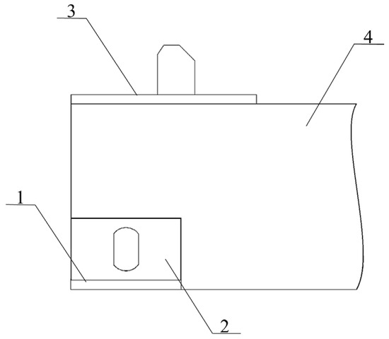 Interaction of the fitting of the removable module with the fitting stop: 1—fitting stop on an open wagon; 2—fitting; 3—fitting stop of the removable module; 4—longitudinal beam of the removable module.