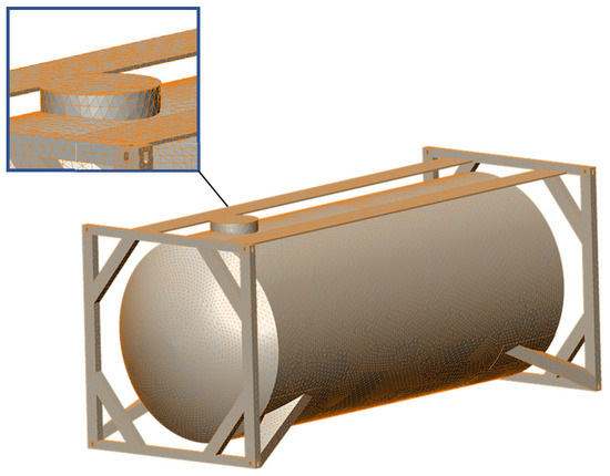 A finite element model of the tank container.