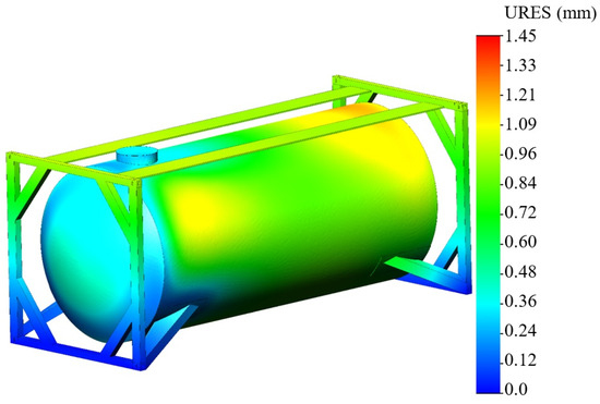 A stressed state of the analyzed tank container.