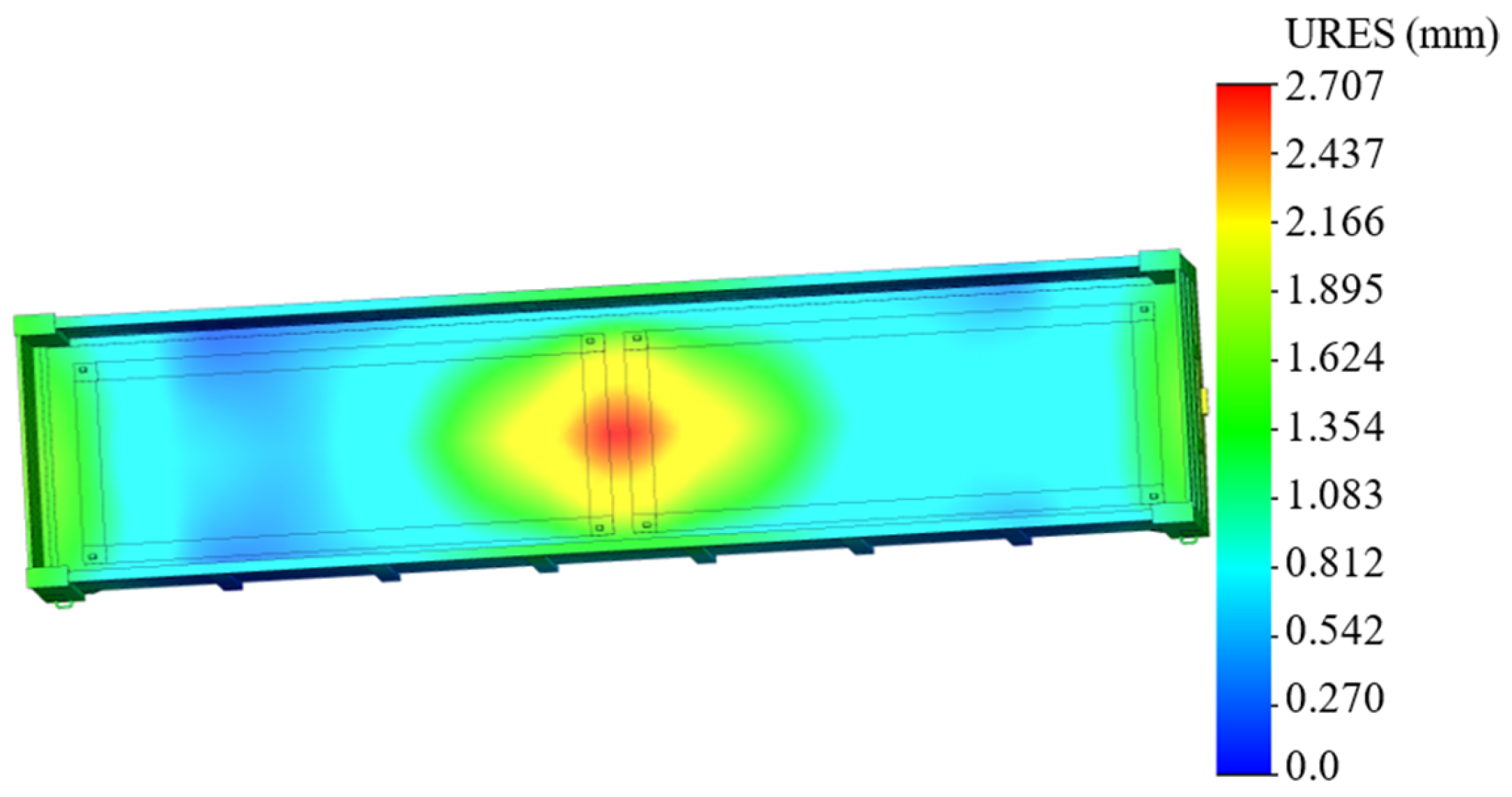 - Vatulia, G.L.; Lovska, A.O.; Krasnokutskyi, Y.S. Research into the transverse loading of the container with sandwich-panel walls when transported by rail. IOP Conf. Ser. Earth Environ. Sci. 2023, 1254, 012140. [Google Scholar] [CrossRef]