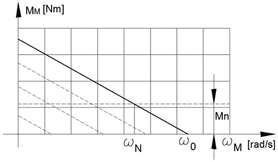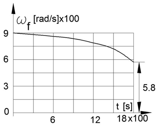 Figure 5 and Figure 6 show the changes in the angular velocity of the motor’s rotor, and the dynamic characteristic of the engine as a function of time.