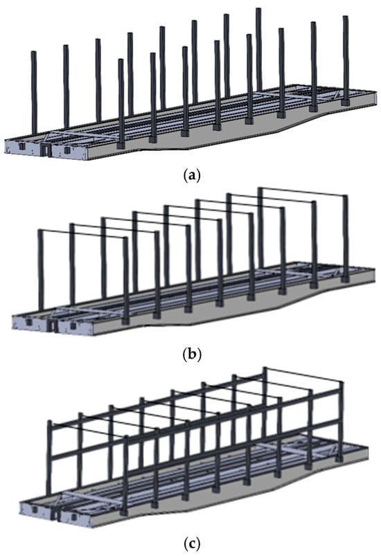 Many scientific studies are devoted to designing, improving, and increasing the efficiency of flat wagons. Study [7] deals with the use of a removable module to adapt flat wagons to the transportation of long cargoes. The structural feature of this module includes the use of elastic–frictional bonds that reduce the dynamic loads in operation. An appropriate scientific substantiation of the removable module design is given. However, the use of the removable module requires an appropriate maintenance and repair system, which complicates its large-scale implementation.