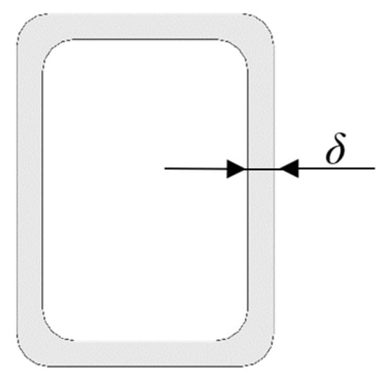 Permissible stresses [σ] for Steel 09G2S were considered equal to 310.5 MPa in accordance with [19]. Then, W = 178 cm3. The corresponding geometry of the stanchion was created in SolidWorks by varying the wall thickness δ (Figure 13).