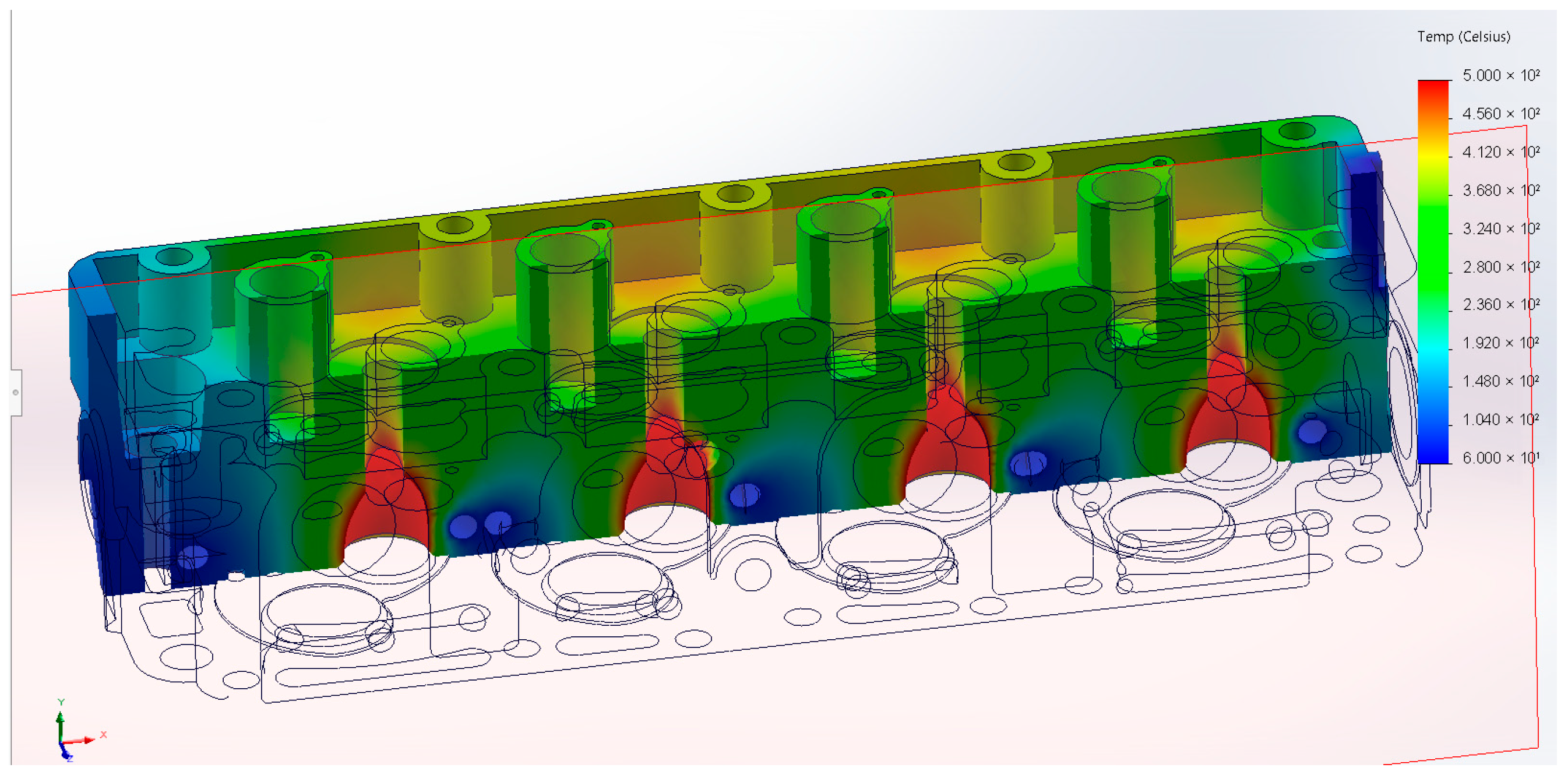 The numerical modelling draws upon data derived from a laboratory study examining the thermal conditions of cylinder heads, conducted by the Department of Transport Engineering and Technologies at the Technical University of Varna, as previously outlined in an earlier publication [