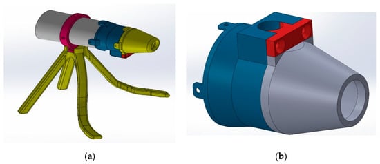 3D CAD drawing of the 3D fabricated sensor testbed (a) and the mounting adapter for UNI-T 363BT anemometer (b).