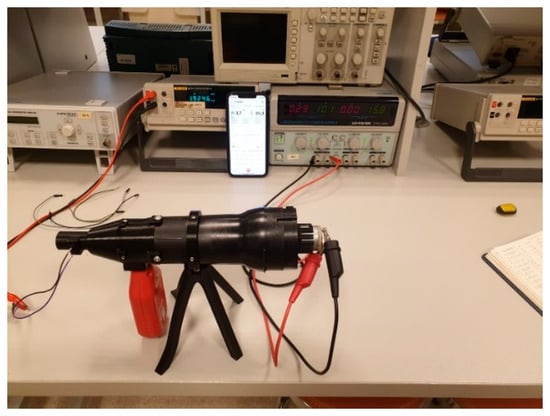 The sensor resistance Rsensor was measured directly using a precision benchtop digital multimeter, Fluke 8808A (Fluke Corporation, Everett, WA, USA), consistent with the simplified testbed architecture introduced in Section 3. A schematic and a photograph of the experimental setup are shown in Figure 4 and Figure 5, respectively.