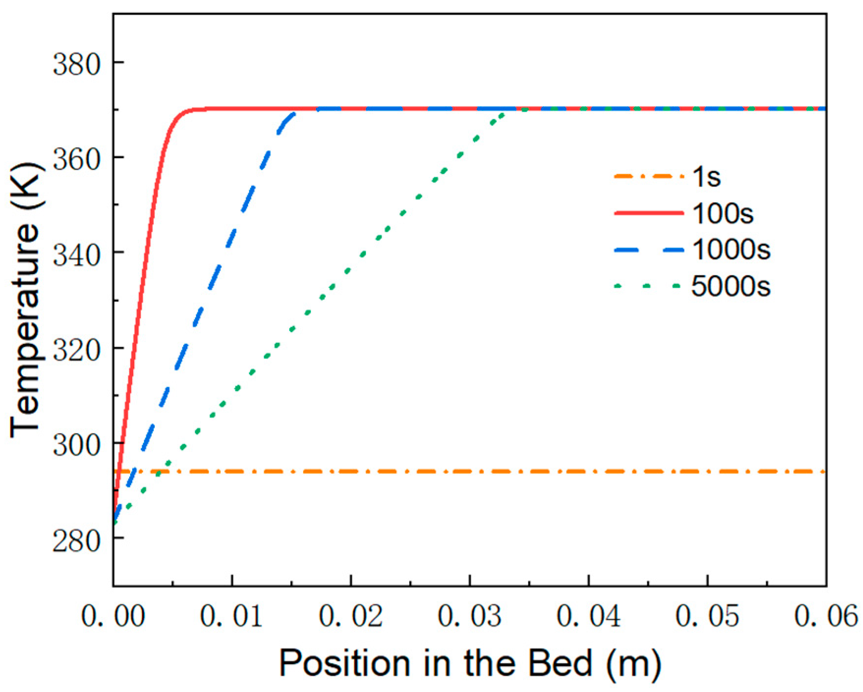 - Behind the reaction front, the reaction is complete, and the MH material reaches saturated hydrogen absorption. At any given time, the temperature distribution increases linearly from the wall temperature to the equilibrium temperature at the reaction front.