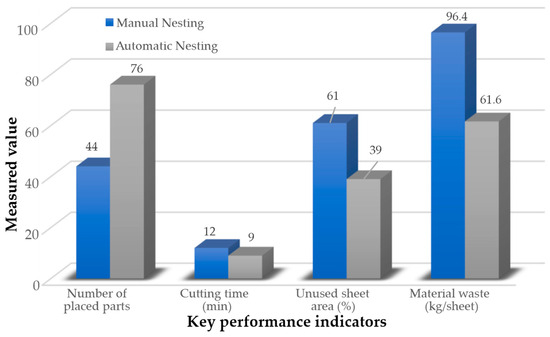 Comparison of key performance indicators between manual and automatic nesting.