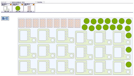 A comparison of the economic advantages of automatic placement versus manual placement is presented in Table 2. As can be seen, waste is reduced by 34.8 kg per sheet, resulting in an average savings of approximately €314 per sheet processed. By using an automatic method, sheet utilization rates are 61% compared to 39% using the manual method due to a better distribution of parts and minimal residual areas [14]. Due to the material savings, the reduction in cutting time by about 3 min per sheet and the reduction in energy consumption by approximately 0.7 kWh per sheet, additional savings were realized in production costs. The combined effect of these factors leads to higher operational efficiency, reduced resource use and increased sustainability of the production process.