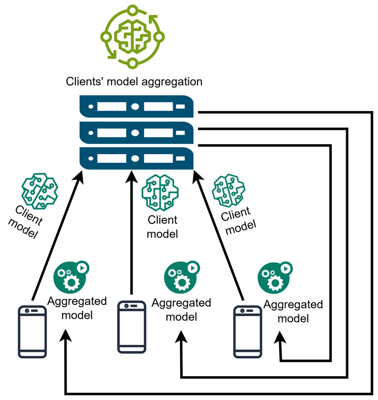 Finally, the server updates the global model with the aggregated weights and distributes the new model back to the clients. This iterative process is repeated until the global model converges or for a predefined FL epochs e = 100 in case of a plateau phenomenon.