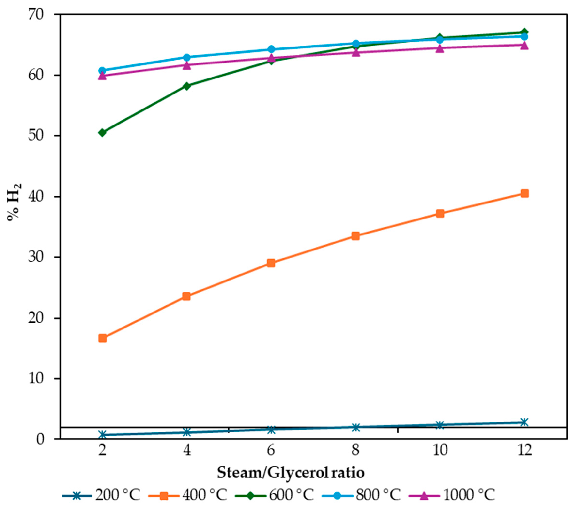 - Unlu, D.; Hilmioglu, N.D. Application of Aspen plus to Renewable Hydrogen Production from Glycerol by Steam Reforming. Int. J. Hydrogen Energy 2020, 45, 3509–3515. [Google Scholar] [CrossRef]