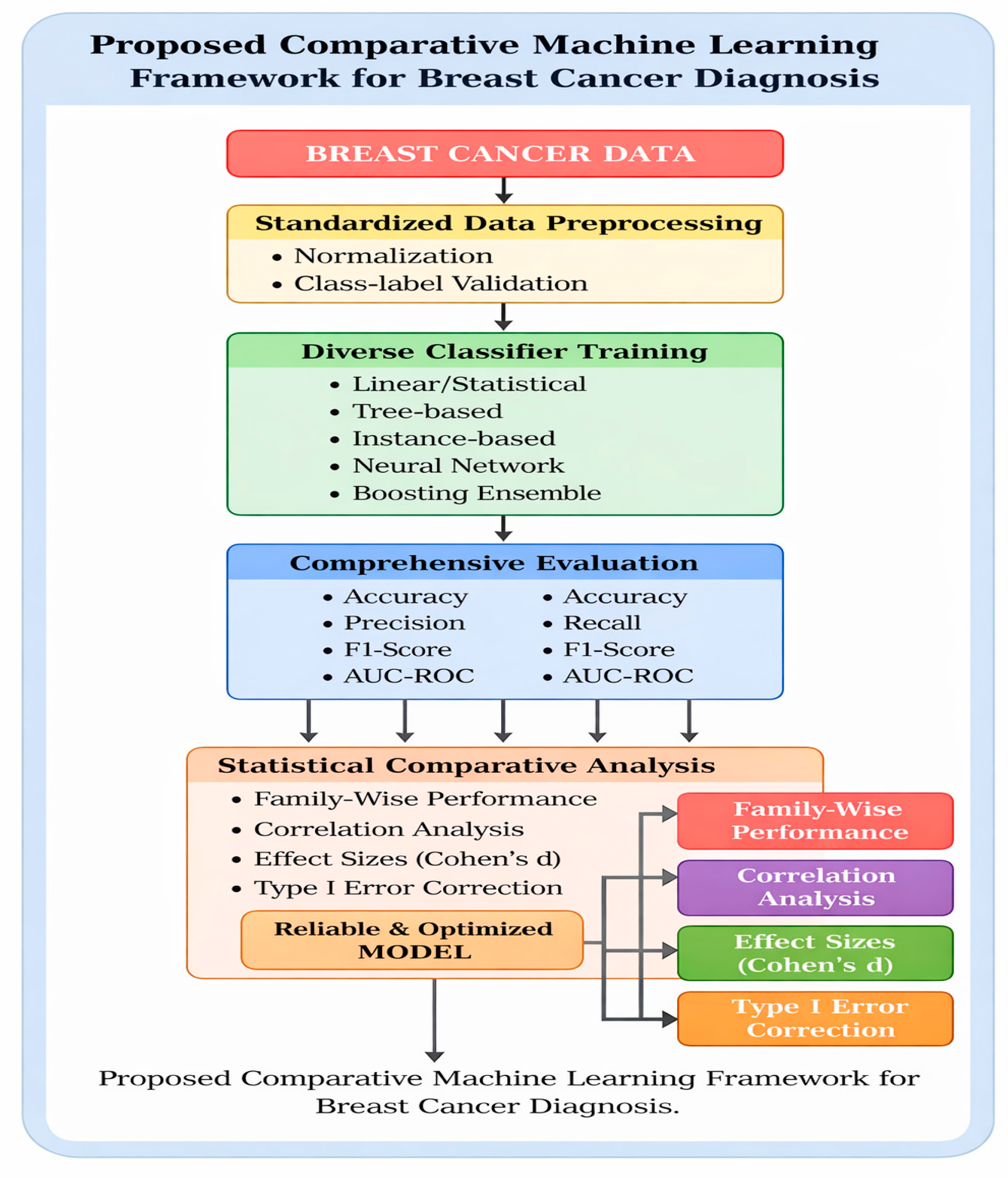 Comparative Evaluation of Machine Learning Classifiers for Breast Cancer Diagnosis: A Comprehensive Statistical Analysis †