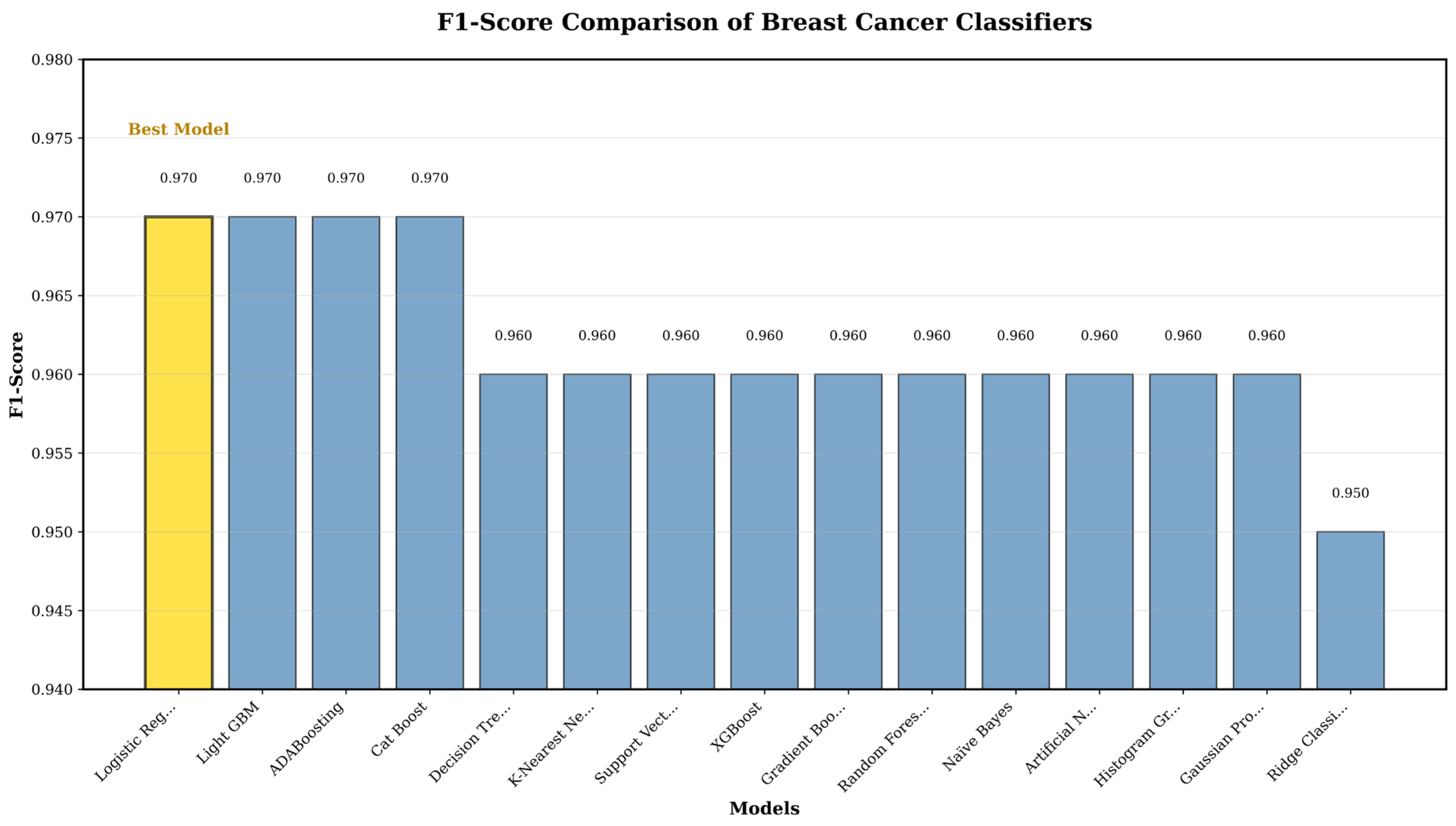 APA StyleDas, S. S., Mahaprasad, A., Padhy, N., Misra, S., Panigrahi, R., Mahapatro, P. K., & Arangi, D. (2026). Comparative Evaluation of Machine Learning Classifiers for Breast Cancer Diagnosis: A Comprehensive Statistical Analysis. Engineering Proceedings, 124(1), 35. https://doi.org/10.3390/engproc2026124035