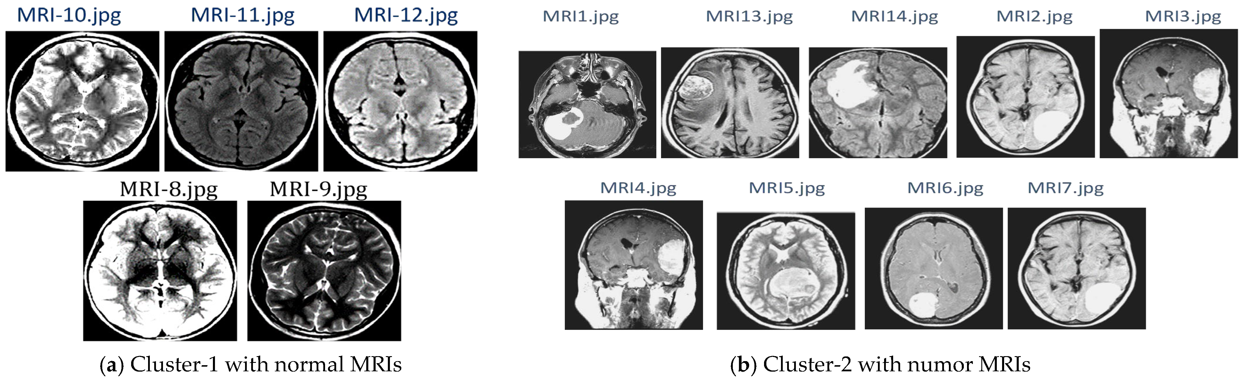 - Kumar, S.; Ahmed, S.T.; Sandeep, S.; Madheswaran, M.; Basha, S.M. Unstructured Oncological Image Cluster Identification Using Improved Unsupervised Clustering Techniques. Comput. Mater. Contin. 2022, 72, 281–298. [Google Scholar] [CrossRef]