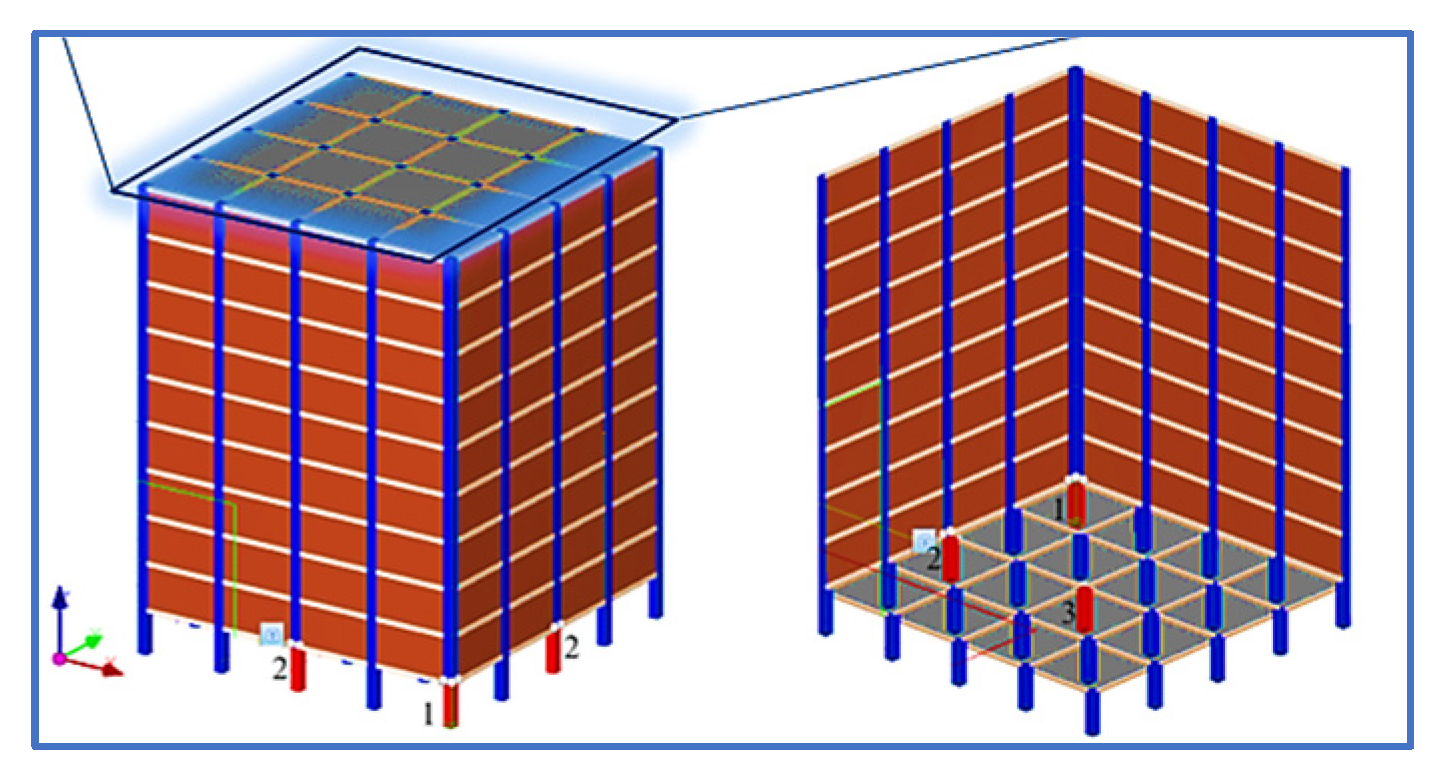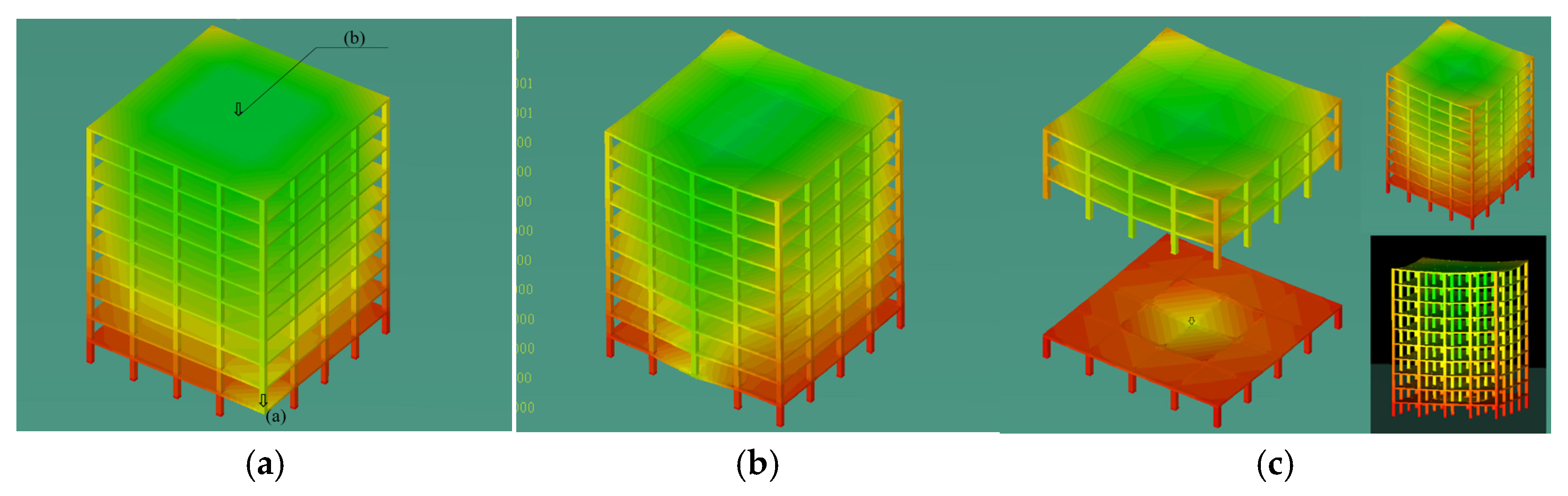 - Senderovich, S.; Brodsky, A. Numerical analysis of RC frames under column removal: A review of current methods and development of a reduced-order approach. J. Build. Eng. 2025, 108, 112847. [Google Scholar] [CrossRef]
