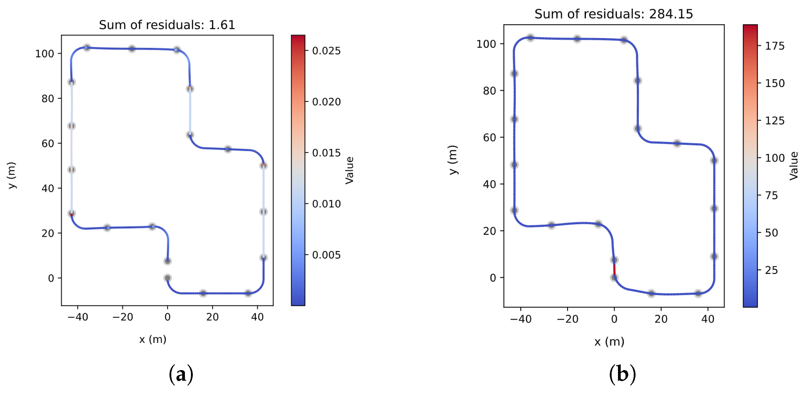 - Wen, W.; Meng, Q.; Hsu, L.T. Integrity monitoring for GNSS positioning via factor graph optimization in urban canyons. In Proceedings of the 34th International Technical Meeting of the Satellite Division of the Institute of Navigation (ION GNSS+ 2021), Online, 20–24 September 2024; pp. 1508–1515. [Google Scholar]