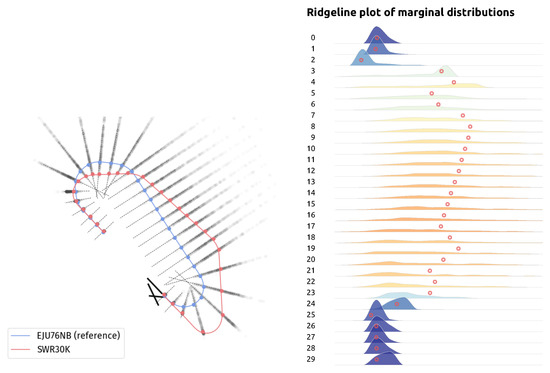 i-th normal line. Due to the approximations in the algorithm, some points may not be exactly aligned but are so close one can assume they are. Thus, the marginals are the statistical distributions of the points along each line displayed in