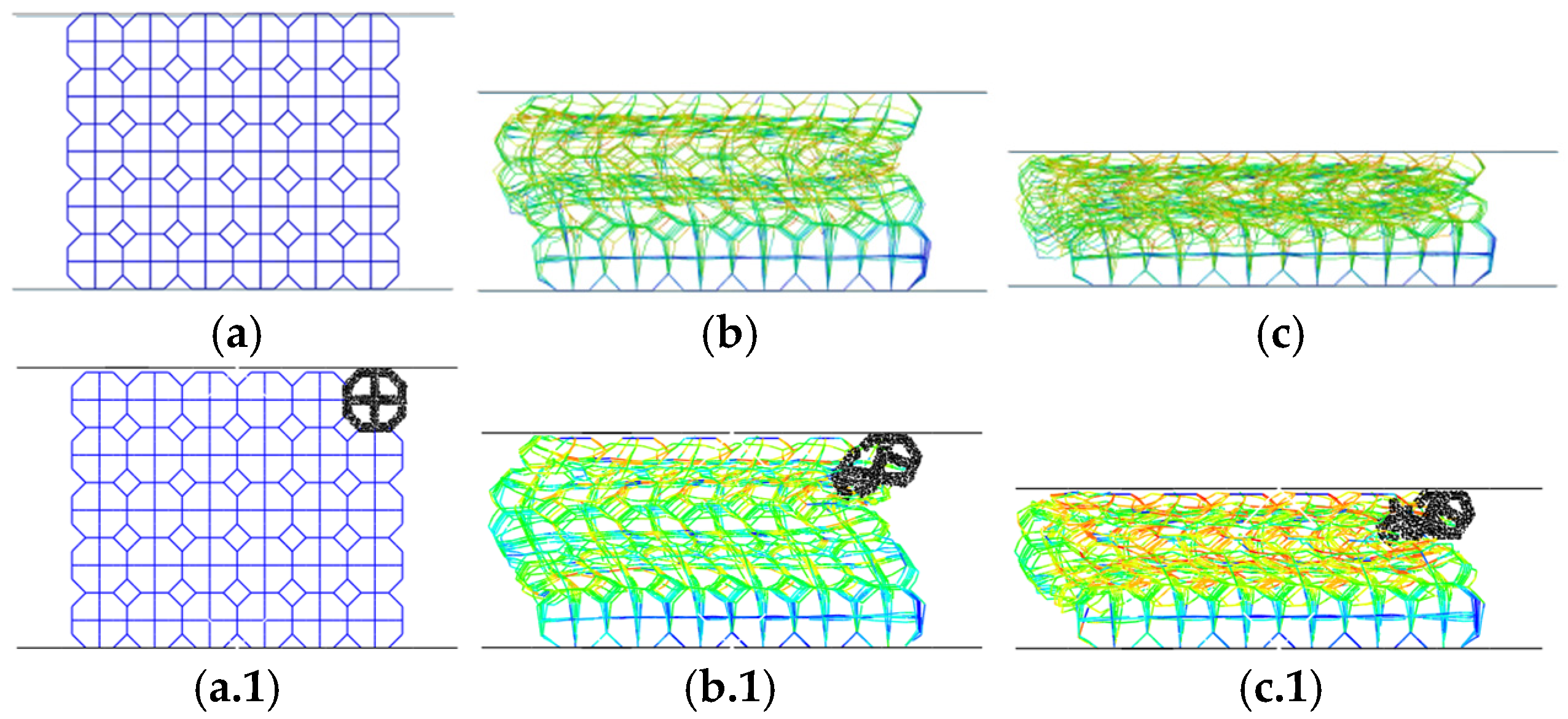 Figure 2 (with a single 3D unit cell), the coupling is enforced between the vertices of the octagonal 3D cell and the adjacent beam nodes. These entities are tied to ensure kinematic continuity and proper load transfer across the interface: beam nodes translate and rotate consistently with the neighboring 3D region. Contact in this transition zone is handled carefully; the portion of any beam penetrating the 3D region is excluded from contact evaluation to prevent nonphysical distortions.