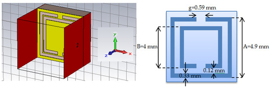6]. The meta-materials used in the antennas field offer advantages such as reduction in weight and bulk, which is beneficial for their integration into electronic systems such as telecommunications systems in general, and telephone systems for the fifth generation (5G) in particular. In addition, the use of the latter aims to improve its characteristics in terms of resonance frequency (to have multi-band structures or rejected bands) and to make them reconfigurable, as well as for improved bandwidth, gain, directivity, mutual coupling minimization in an antenna array, polarization, and radiation pattern [