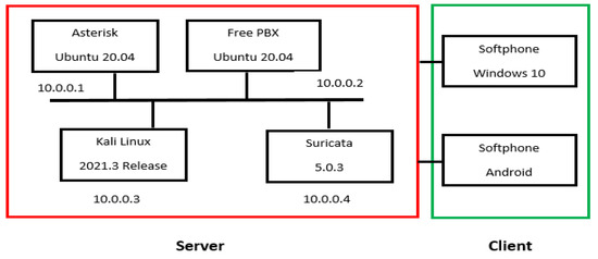 - Kasse, B. Study and Implementation of a VoIP Communication System: Applied to an Open-Source IP PABX. Master’s Thesis, University Cheikh Anta Diop de Dakar, Dakar, Senegal, 2011. [Google Scholar]