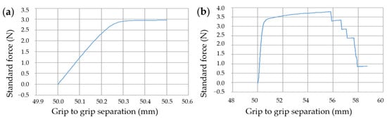 Tensile test results of the core structure of the E-yarn: (a) before encapsulation; (b) after encapsulation.