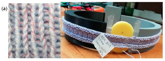 - Fobelets, K.; Thielemans, K.; Mathivanan, A.; Papavassiliou, C. Characterisation of knitted coils for e-textiles. IEEE Sens. J. 2019, 19, 7835–7840. [Google Scholar] [CrossRef] [Green Version]