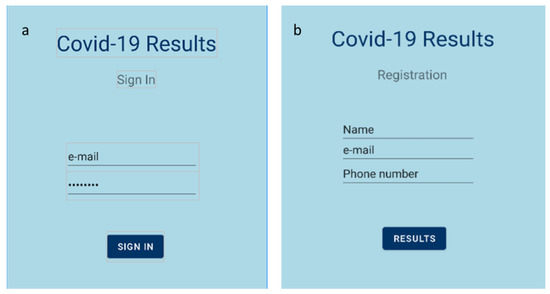 Mobile application’s homepage; (a) sign in page; (b) registration page.