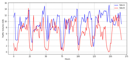 We observe from Figure 1 a variation in data traffic demand at the two locations, motivating the need for additional investigation of the traffic pattern in the spatial dimension. Since mobile users constantly move within a given cellular network, the traffic pattern across neighboring base stations are correlated or complemented, such that developing in both the spatial and temporal dimensions would provide better information for telecom operators [12]. Spatiotemporal data traffic prediction incorporates different user behavior such as mobility and network behavior, such as the number of handovers in the network [13].