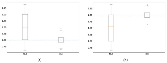- Dempster, A.P.; Laird, N.M.; Rubin, D.B. Maximum likelihood from incomplete data via EM Algorithm. J. R. Stat. Soc. Ser. B 1977, 39, 1–22. [Google Scholar]