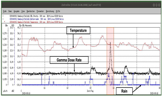 - Stöhlker, U.; Bleher, M.; Doll, H.; Dombrowski, H.; Harms, W.; Hellmann, I.; Luff, R.; Prommer, B.; Seifert, S.; Weiler, F. The German Dose Rate Monitoring Network And Implemented Data Harmonization Techniques. Radiat. Prot. Dosim. 2019, 183, 405–417. [Google Scholar] [CrossRef] [PubMed]