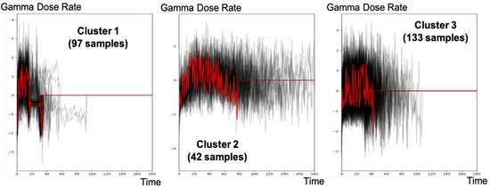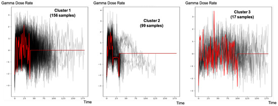 In the beginning, we considered all subsequences of the time series where the gamma dose rate went above the threshold as incidents; however, we found that short incidents added much noise to the data set after experimentation. The clustering could not achieve any satisfactory results, so we re-consulted the experts. In the remaining work, we discarded all incidents that did not last at least 30 min above the peak threshold.