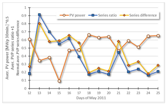 The daily average PV series ratios are dimensionless and characterize daily data patterns regard-less of the absolute power values, 12–25 May 2011.